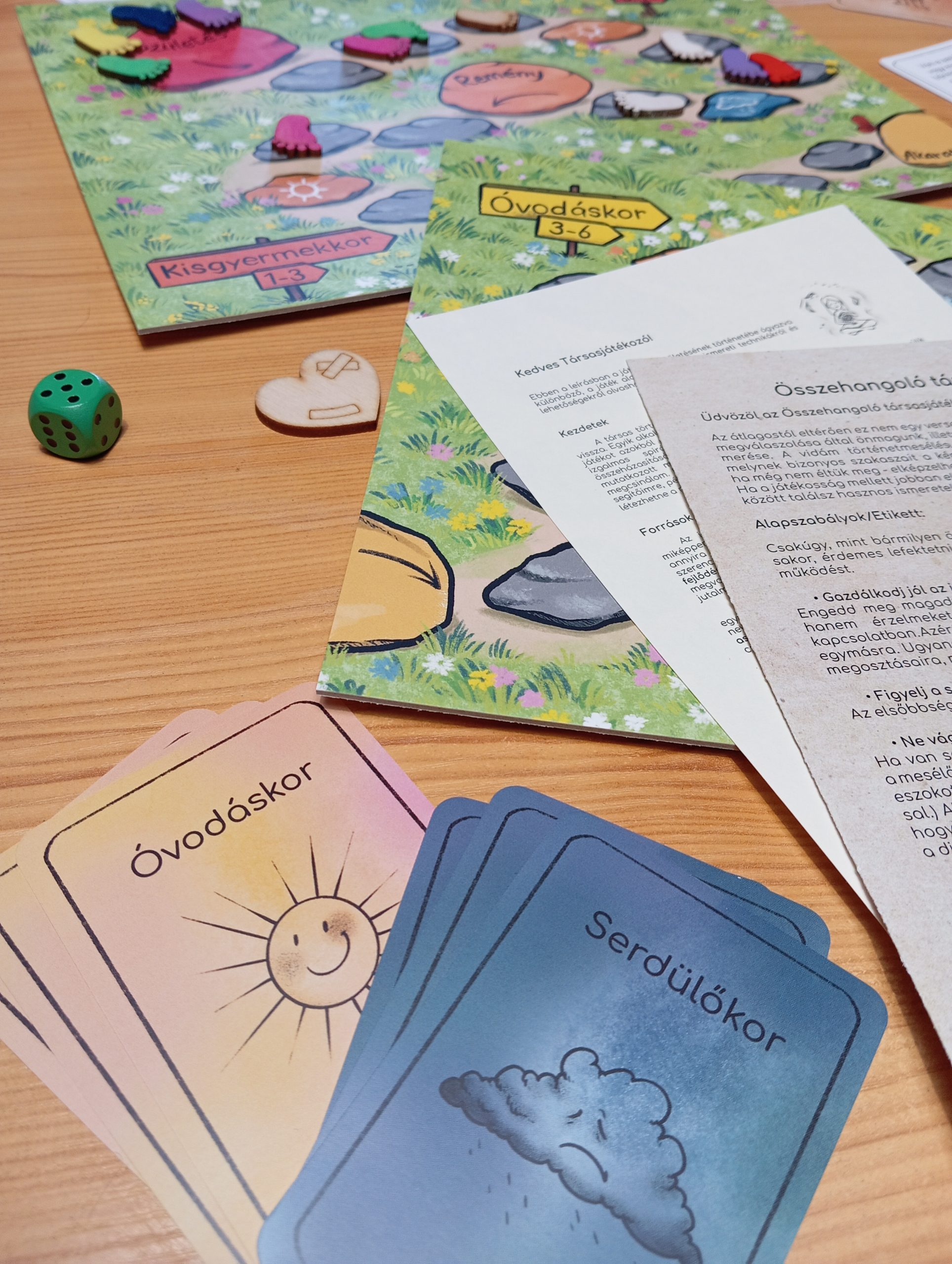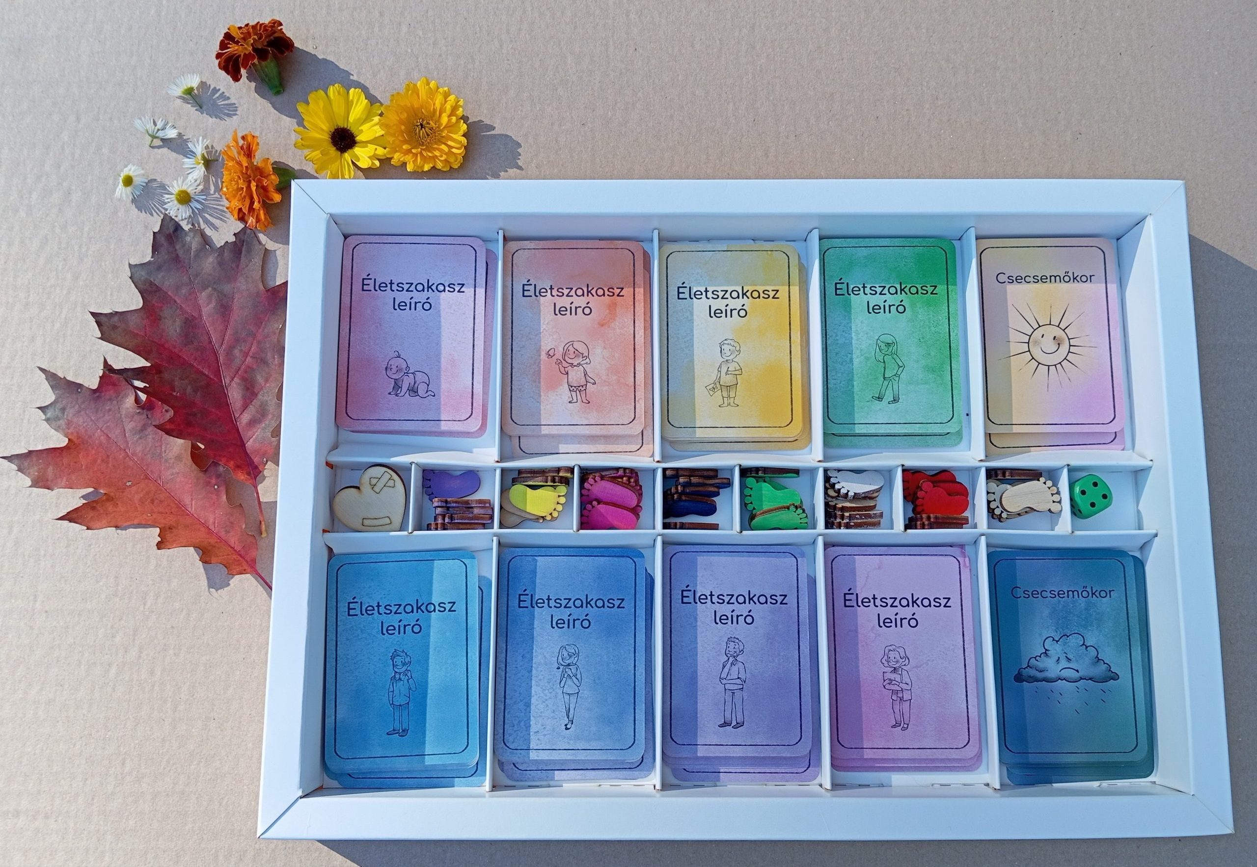 A játékban található napocska és felhőcske kártyák, valamint az életszakasz-leírók segítenek jobban megérteni, milyen lelki feladatokat, erőforrásokat és fejlődési lehetőségeket rejt az életünk minden korszaka.